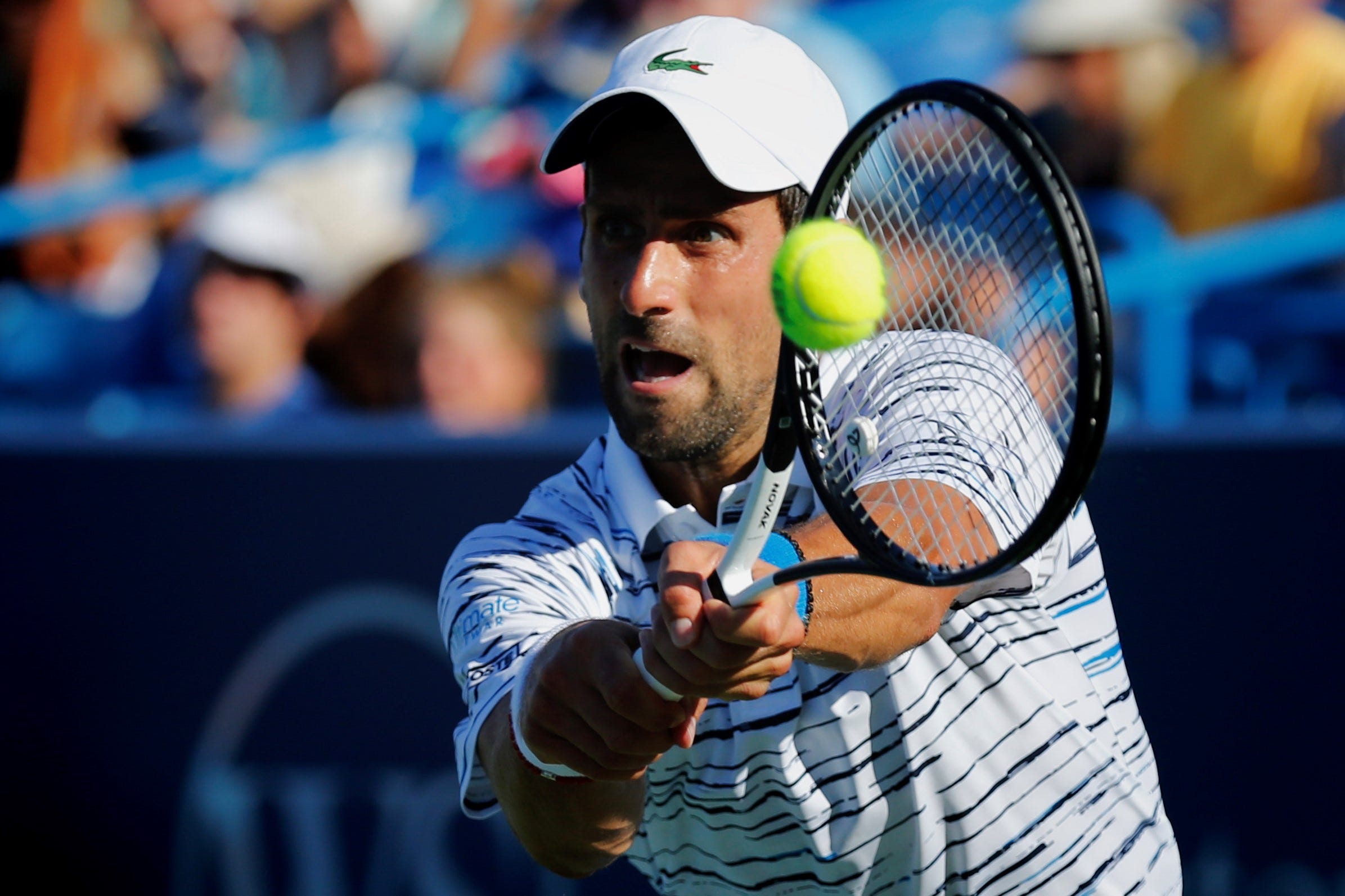 Novak Djokovic began his Western & Southern Open title defense with a win over Sam Querrey in straight set Tuesday night on Center Court